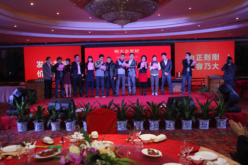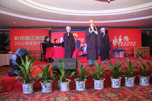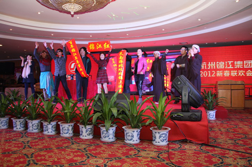 1月20日上午,集团总部在杭州星都宾馆隆重举办了2012年迎新春联欢会,集团主要领导、集团各部门员工、集团总部各位退休老同志、部分返杭过年企业和项目部干部员工、部分家属代表等近200余人参加了此次联欢活动,大家欢聚一堂,喜迎新春佳节的到来。来自祖国各地锦江企业的新年祝福此起彼伏。