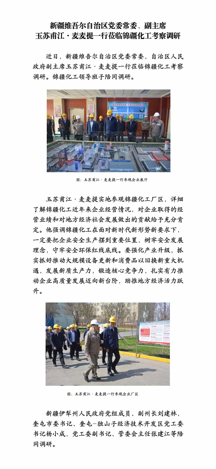 新疆维吾尔自治区党委常委、副主席 玉苏甫江·麦麦提一行莅临锦疆化工考察调研