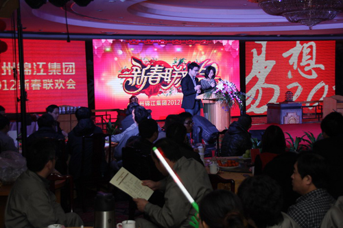 1月20日上午,集团总部在杭州星都宾馆隆重举办了2012年迎新春联欢会,集团主要领导、集团各部门员工、集团总部各位退休老同志、部分返杭过年企业和项目部干部员工、部分家属代表等近200余人参加了此次联欢活动,大家欢聚一堂,喜迎新春佳节的到来。来自祖国各地锦江企业的新年祝福此起彼伏。